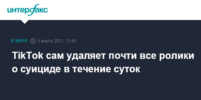 Москва. 3 марта. INTERFAX.RU - Интернет-сервис с короткими видео TikTok самостоятельно удаляет более 90% суицидального контента, так как такие ролики запрещены правилами сообщества, сообщили "Интерфаксу" в пресс-службе сервиса.