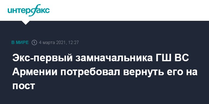 Экс-первый замначальника ГШ ВС Армении потребовал вернуть его на пост