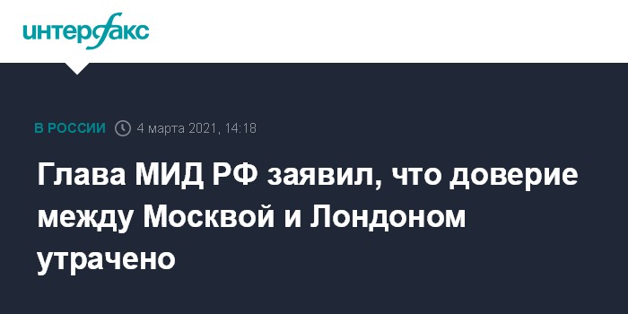 Глава МИД РФ заявил, что доверие между Москвой и Лондоном утрачено