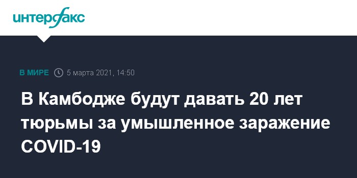 В Камбодже будут давать 20 лет тюрьмы за умышленное заражение COVID-19