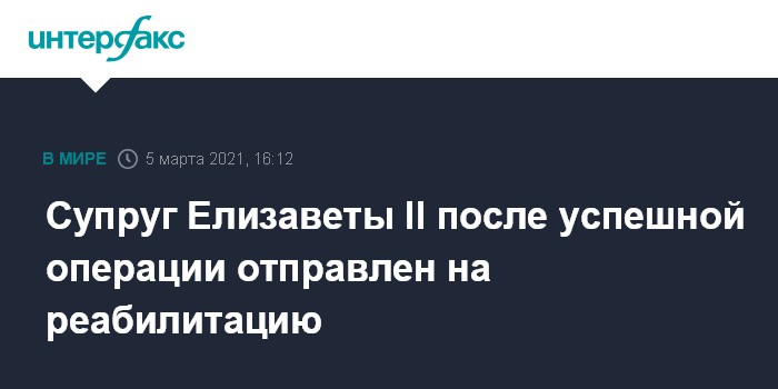 Москва. 5 марта. INTERFAX.RU - Супруг британской королевы Елизаветы II принц Филипп после операции на сердце вновь помещен в больницу имени короля Эдуарда VII для реабилитации, сообщает Букингемский дворец.