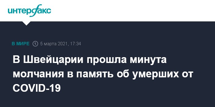 Москва. 5 марта. INTERFAX.RU - В Швейцарии 5 марта днем прошла минута молчания в память об умерших от последствий заражения коронавирусом. Ее провели ровно через год после первого летального случая в стране.