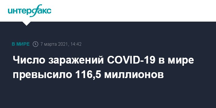 Число заражений COVID-19 в мире превысило 116,5 миллионов
