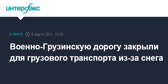Москва. 8 марта. INTERFAX.RU - Движение на участке Гудаури - Коби (Крестовый перевал) международной автомагистрали Мцхета - Степанцминда - Ларс (Военно-Грузинская дорога), ведущей из Грузии в направлении России, запрещено для большегрузов, сообщил в понедельник департамент автодорог Минрегионразвития и инфраструктуры Грузии.
