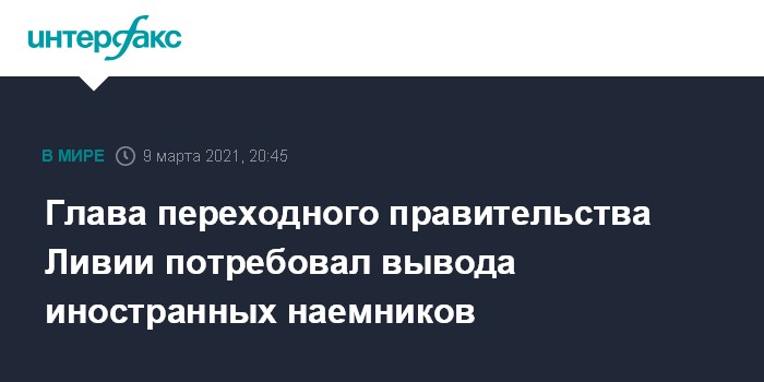 Москва. 9 марта. INTERFAX.RU - Глава переходного правительства Ливии, ожидающего одобрения парламента, Абдель Хамид Мухаммед Дбейб заявил, что будет добиваться вывода иностранных наемников с ливийской территории.