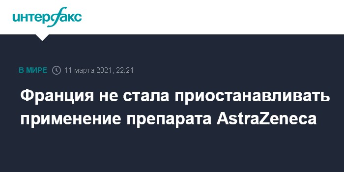 Москва. 11 марта. INTERFAX.RU - Министр здравоохранения Франции Оливье Веран заверил в четверг французское население, что нет причин приостанавливать вакцинацию препаратом AstraZeneca, который в последние дни вызвал в ряде стран ЕС опасения о возможном побочном эффекте тромбообразования.