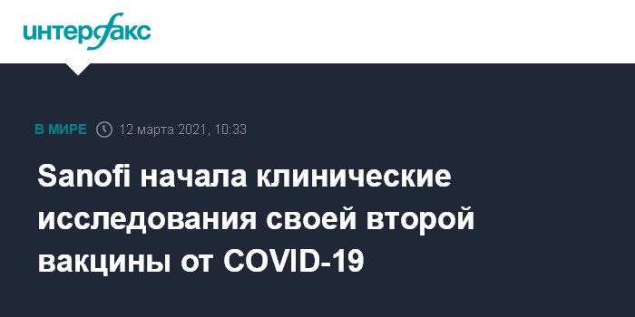 Москва. 12 марта. INTERFAX.RU - Французская фармацевтическая компания Sanofi объявила о начале клинических исследований своей второй вакцины от коронавируса, разрабатываемой совместно с американской Translate Bio. Это вакцина мРНК.