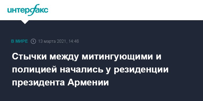 Москва. 13 марта. INTERFAX.RU - Стычки между полицией и требующими отставки премьер-министра Никола Пашиняна демонстрантами начались у служебного входа в резиденцию президента страны.