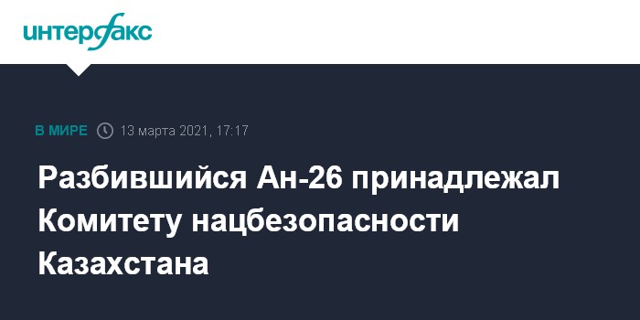 Москва. 13 марта. INTERFAX.RU - Потерпевший крушение в Алма-Ате самолет Ан-26 принадлежал Авиационной службе Комитета национальной безопасности (КНБ), сообщила пресс-служба КНБ.