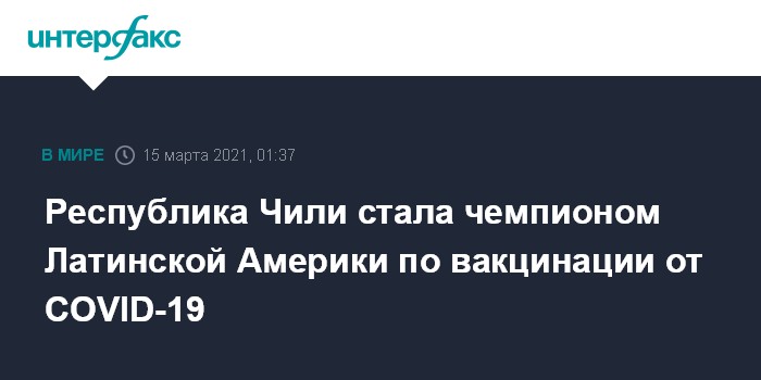 Москва. 15 марта. INTERFAX.RU - Республика Чили вышла на первое место среди стран Латинской Америки по вакцинации своего населения от коронавируса, сообщает Associated Press.