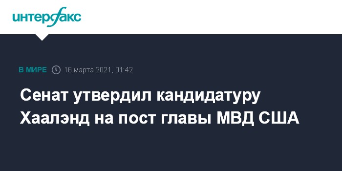 Москва. 16 марта. INTERFAX.RU - Сенат США в понедельник проголосовал за утверждение кандидатуры Дебры Хаалэнд на пост главы министерства внутренних дел.