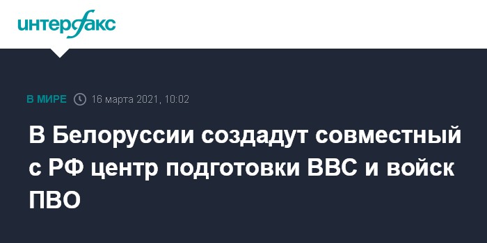 Москва. 16 марта. INTERFAX.RU - Белоруссия и РФ планируют создать учебно-боевой центр совместной подготовки ВВС и войск ПВО, говорится в сообщении в телеграм-канале Минобороны республики во вторник.