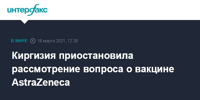 Москва. 16 марта. INTERFAX.RU - Киргизия остановила рассмотрение вопроса о поставке в страну вакцины от коронавируса AstraZeneca в рамках программы COVAX, сообщил "Интерфаксу" во вторник министр здравоохранения страны Алымкадыр Бейшеналиев.