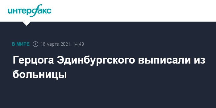 Москва. 16 марта. INTERFAX.RU - Муж британской королевы принц Филипп, герцог Эдинбургский, покинул частную больницу имени короля Эдуарда VII в Лондоне, сообщает BBC News. Всего он пробыл в стационаре 28 суток - это самая долгая госпитализация в жизни 99-летнего принца.