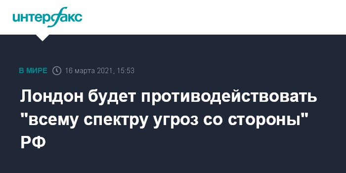 Москва. 16 марта. INTERFAX.RU - Великобритания будет предпринимать контрмеры против всех типов угроз, которые несет Россия, говорится в обнародованном обзоре внешнеполитической стратегии британских властей.