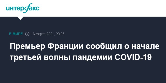 Москва. 16 марта. INTERFAX.RU - Франция столкнулась с третьей волной пандемии коронавируса, считает премьер-министр страны Жан Кастекс.