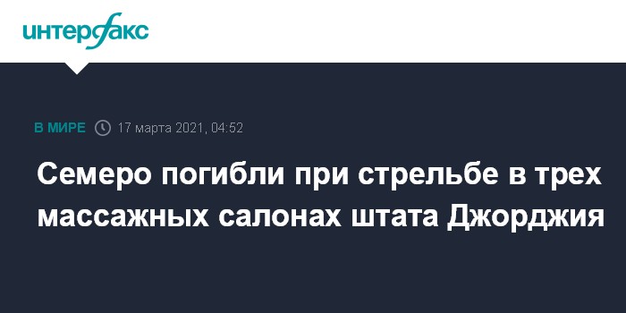 Москва. 17 марта. INTERFAX.RU - Семь человек погибли в результате стрельбы в трех массажных салонах американского штата Джорджия, сообщает Associated Press.