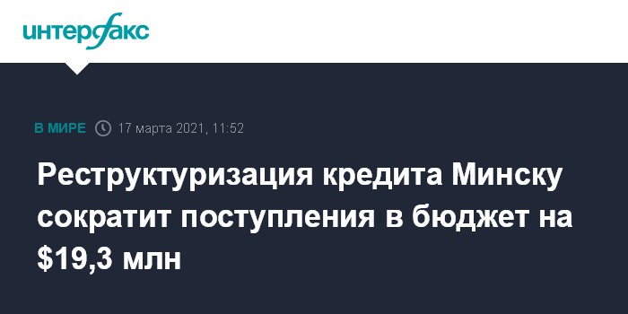Реструктуризация кредита Минску сократит поступления в бюджет на $19,3 млн
