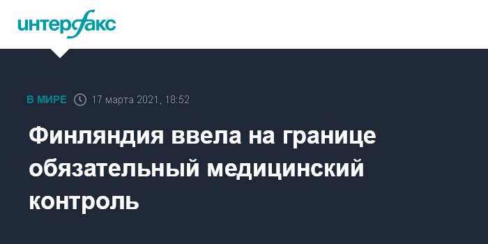 Москва. 17 марта. INTERFAX.RU - Финляндия начиная с четверга вводит обязательный медицинский контроль на пограничных пунктах юга страны.