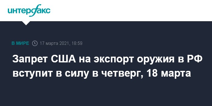 Запрет США на экспорт оружия в РФ вступит в силу в четверг, 18 марта