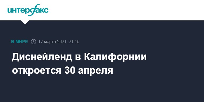 "Парк Диснейленд и Парк приключений Дисней Калифорния планируют официально возобновить работу 30 апреля", - говорится в сообщении на сайте парка.