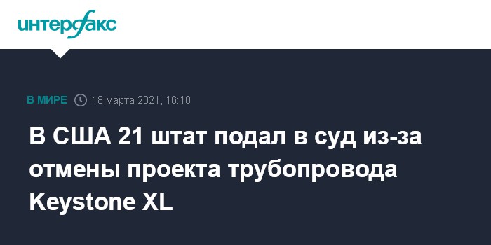 Москва. 18 марта. INTERFAX.RU - Генеральные прокуроры 21 американского штата обратились в суд, чтобы оспорить решение президента США Джо Байдена относительно трубопровода Keystone XL.