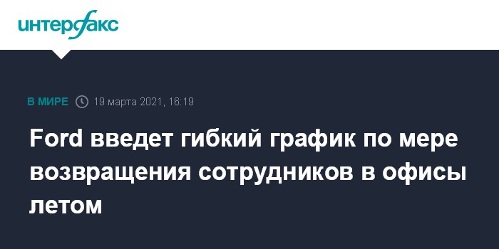 Как сказала CNBC руководитель отдела по работе с персоналом Ford Кирстен Робинсон, массовое возвращение сотрудников в офисы ожидается не раньше июля. По скольку дней в неделю они смогут работать по-прежнему удаленно, будет зависеть от их должностных обязанностей и от решения начальства.