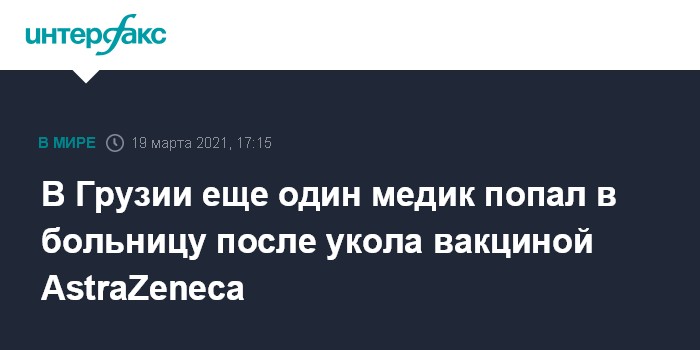 Москва. 19 марта. INTERFAX.RU - В Грузии еще у одного медицинского работника прививка вакциной AstraZeneca вызвала анафилактический шок, сообщает в пятницу грузинская телекомпания "Рустави-2".