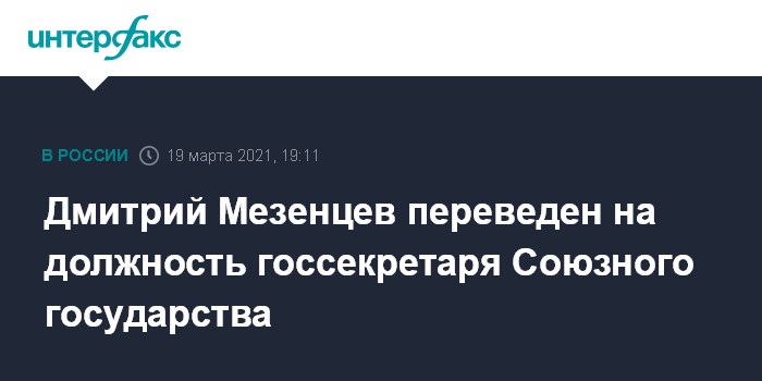 Источник "Интерфакса" в российском Федеральном собрании сказал, что Мезенцев, как ожидается, сменит Григория Рапоту на посту госсекретаря Союзного государства России и Белоруссии.