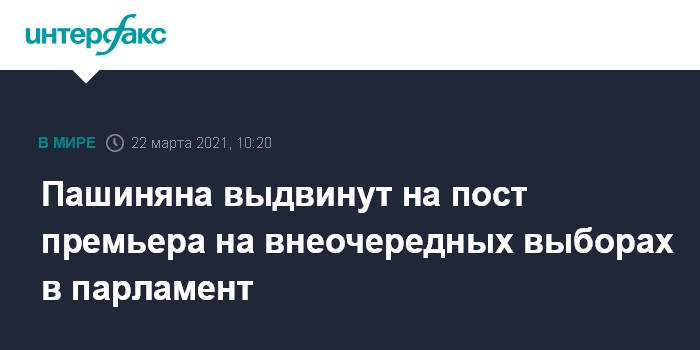 Москва. 22 марта. INTERFAX.RU - Правящая партия "Мой шаг" на предстоящих внеочередных выборах в парламент выдвинет кандидатуру Никола Пашиняна на пост премьер-министра.