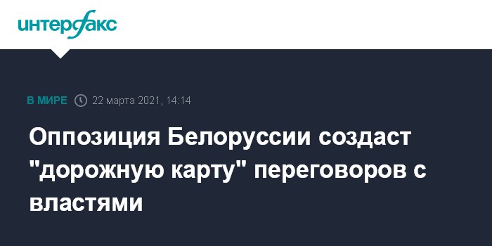 Москва. 22 марта. INTERFAX.RU - Оппозиция вместе с ОБСЕ, ООН, ЕС вырабатывает "дорожную карту" переговоров с властями Белоруссии для разрешения кризиса в республике.