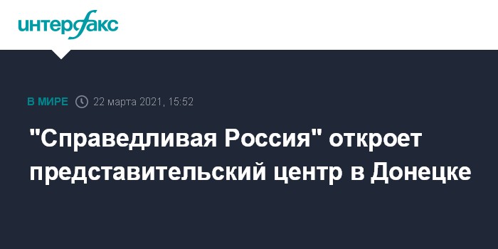 Москва. 22 марта. INTERFAX.RU - Партия "Справедливая Россия - За правду" откроет в самопровозглашенной Донецкой народной республике (ДНР) партийный центр, сообщила пресс-служба партии. Сделать это поручено Алексею Жигулину, помощнику председателя партии Сергея Миронова.