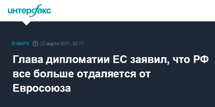 Глава дипломатии ЕС заявил, что РФ все больше отдаляется от Евросоюза