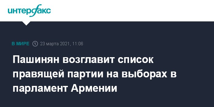 Москва. 23 марта. INTERFAX.RU - Предвыборный список правящей партии "Гражданский договор" на предстоящих 20 июня досрочных парламентских выборах возглавит действующий премьер Никол Пашинян.