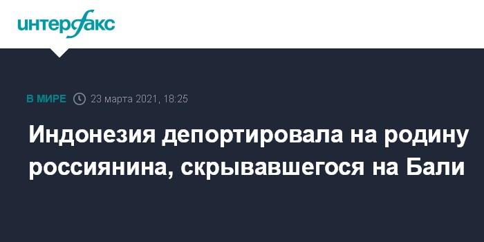 Москва. 23 марта. INTERFAX.RU - Власти Индонезии депортировали в РФ жителя Санкт-Петербурга, обвиняемого в особо крупном сбыте и контрабанде наркотиков и скрывавшегося за границей под другим именем.