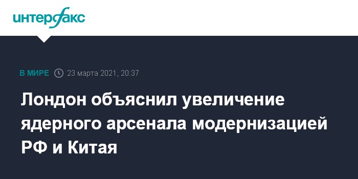 "Основная их мысль была одинакова: изменения в политике Британии в сфере ядерного сдерживания – реакция на возросшую существенную модернизацию российского и китайского (ядерного - ИФ) потенциала", - сказал он на пресс-конференции.