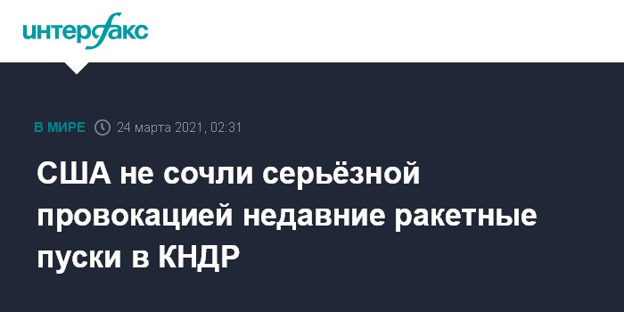 Москва. 24 марта. INTERFAX.RU - Администрация США не считает масштабной провокацией недавние пуски в КНДР ракет малой дальности, сообщают американские СМИ со ссылкой на неназванного высокопоставленного чиновника в Белом доме.