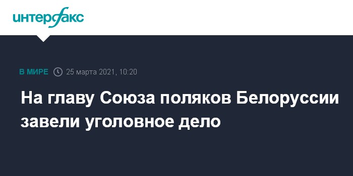 Москва. 25 марта. INTERFAX.RU - Белорусская Генпрокуратура сообщила о возбуждении уголовного дела против главы Союза поляков Белоруссии (СПБ) Анжелики Борис и ряда активистов этой организации, СПБ сообщает об обысках в домах их активистов.