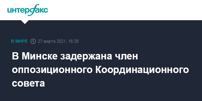 Москва. 27 марта. INTERFAX.RU - В Минске задержана член основного состава оппозиционного Координационного совета Наталия Дулина, говорится в сообщении в телеграм-канале объединения.