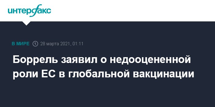 "В последние недели ЕС столкнулся со значительными трудностями в ответ на пандемию COVID-19 из-за задержек с производством вакцины. Тем не менее, ЕС сделал и продолжает делать для вакцинации остального мира больше, чем это известно публично, и больше, чем получает признание", - написал он в субботу в своем блоге на сайте Европейской внешнеполитической службы (ЕВС).