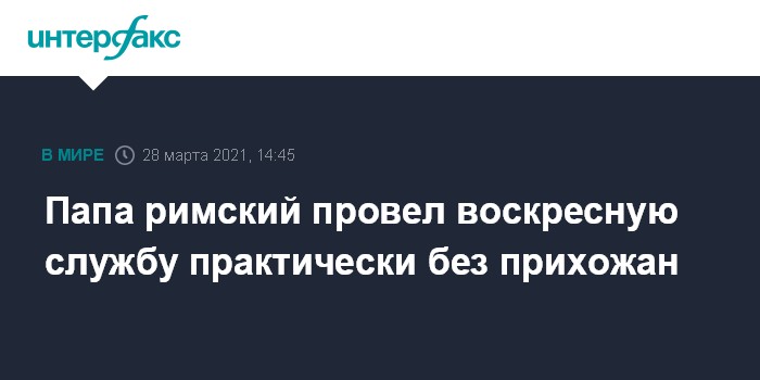 Москва. 28 марта. INTERFAX.RU - В Ватикане папа римский Франциск второй год подряд проводит службу в честь Вербного воскресенья, которое христиане отмечают за неделю до Пасхи, практически без прихожан из-за пандемии коронавируса, передают западные СМИ.