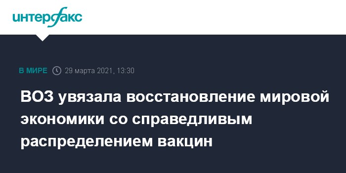 ВОЗ увязала восстановление мировой экономики со справедливым распределением вакцин