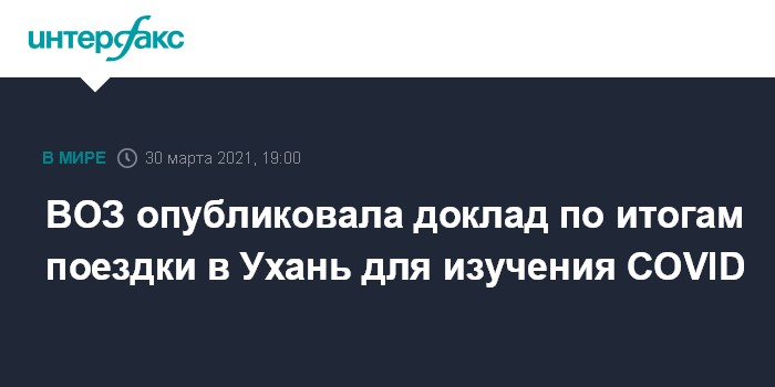 Москва. 30 марта. INTERFAX.RU - Всемирная организация здравоохранения (ВОЗ) во вторник опубликовала доклад о происхождении коронавируса по итогам поездки ее экспертов в Китай.