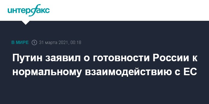 Путин заявил о готовности России к нормальному взаимодействию с ЕС
