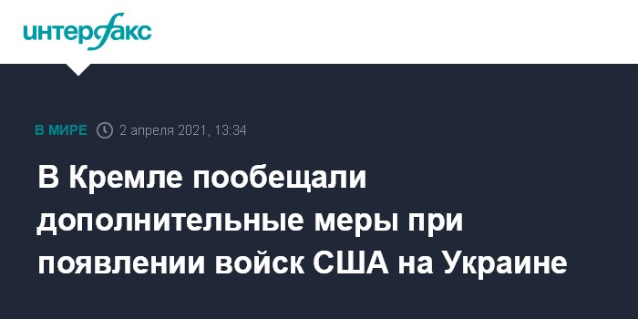 Москва. 2 апреля. INTERFAX.RU - В случае появления войск Соединенных Штатов на территории Украины или усиления сил НАТО в соседних с ней странах потребуются все необходимые дополнительные меры для обеспечения безопасности РФ, заявил пресс-секретарь российского президента Дмитрий Песков.