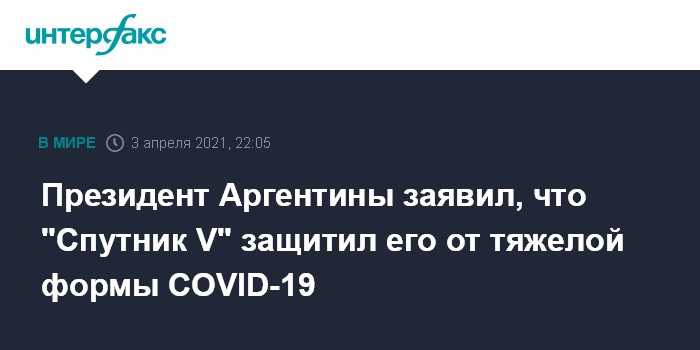 Президент Аргентины заявил, что "Спутник V" защитил его от тяжелой формы COVID-19