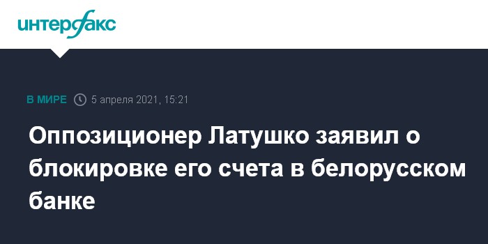 Москва. 5 апреля. INTERFAX.RU - Член президиума Координационного совета белорусской оппозиции Павел Латушко заявил, что банк в Белоруссии заблокировал его расчетный счет.