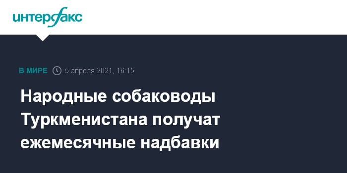 Москва. 5 апреля. INTERFAX.RU – В Туркменистане учреждены почетные звания народный и заслуженный собаковод страны, которым предусмотрены единовременные премии и ежемесячные денежные надбавки.