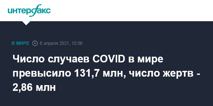 Число случаев COVID в мире превысило 131,7 млн, число жертв - 2,86 млн