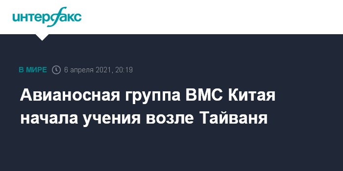 Москва. 6 апреля. INTERFAX.RU - Авианосная группа Китая во главе с авианосцем "Ляонин" ведет учения в водах вблизи Тайваня. Об этом сообщило во вторник агентство Associated Press (AP) со ссылкой на заявление ВМС Китая.